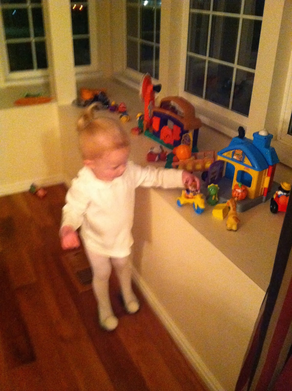 She looks like a miniature person here instead of a toddler. She is so cute and little.